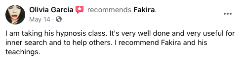 "Very easy to follow and thorough training. Fakira Ji shares his immense knowledge and understanding on the topic of hypnosis. For me this course helped to tie it all together. I enjoyed it very much.